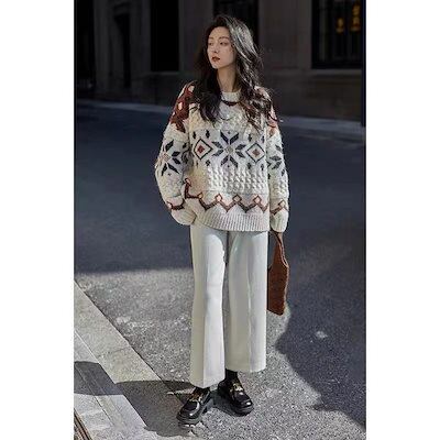 ベーシックニット 日系 秋冬 ホワイト レトロ ジェントルスタイル ニッチデザイン 高級感 厚手 セーター ニットカーディガン