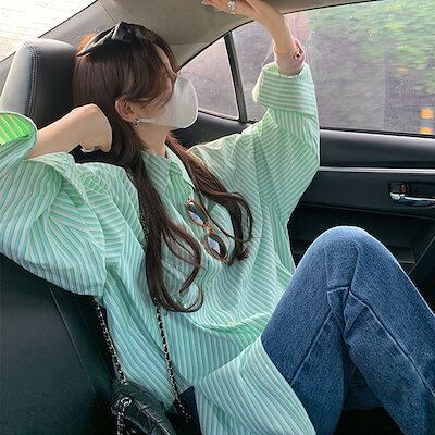 今っぽシアーシャツTシャツ トップス長袖ブラウス?春先取りブラウス ストライプシャツシフォンウィメンズウェア夏日焼け防止トップスカーデブ レディース