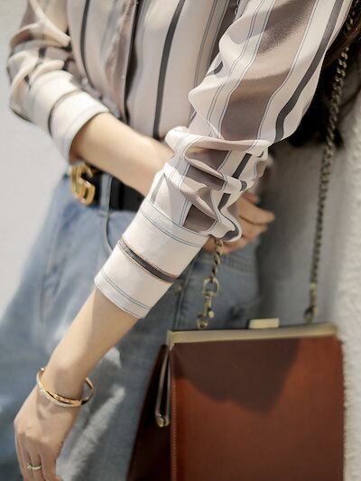 【3日以内出荷】今っぽシアーシャツシアーシャツ Tシャツ 秋 長袖ブラウス/ ストライプシャツ着痩せ上着レースVネックカジュアル 長袖シャツブラウス 韓国ファッション プブラウス レディース