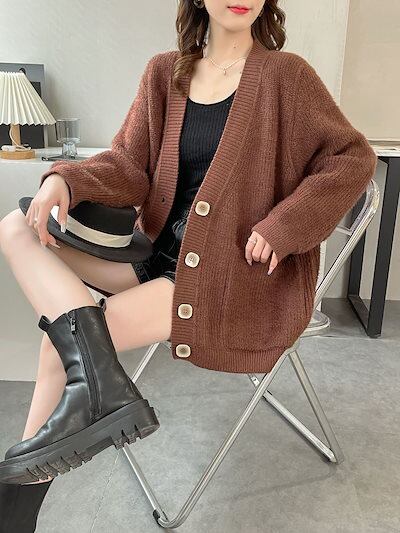ベーシックニット 韓国系ビッグ版セーターコート女2023新型高級感だるさ風秋冬ニットボタンカーディガンモチモチ