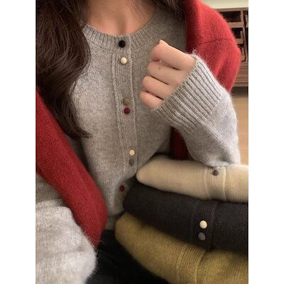 期間限定韓系春先新作ニットカーディガン婦人服カラーベルベットまどかボタンモチモチレトロ優しい風セーターコート