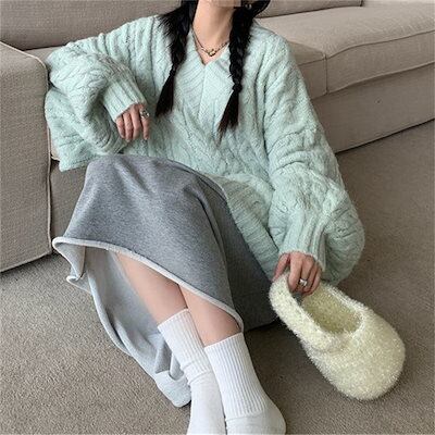 期間限定 Vネック厚手麻セーター女性秋冬ゆったり外着だるい風デザイン感ミニ保温ニットトップス