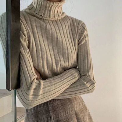 ベーシックニット 韓国の人気ニット 半タートルネックセーターハーフハイカラーのプルオーバーソリッドカラー レディース