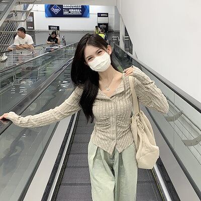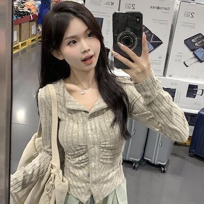 ベーシックニット 優しげな減齢風ニット女秋の長袖開襟デザイン仕立てスリム見え上品カーディガントップス