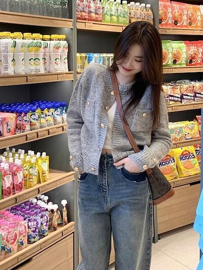 ベーシックニット 秋の2023新作フレンチ高級感のある小香風セーターコートだるい風薄手グレーニットカーディガン女