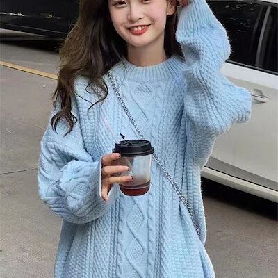 2024優しい風グリーン麻の丸首セーター女秋冬厚手ゆったりゆったりモチモチ甘いニットトップス