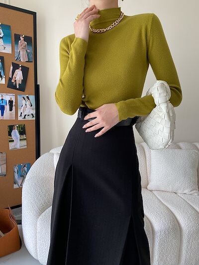 フレンチシガレットチューブハーフハイネックフィットニットボトムデザイン2024春先新作