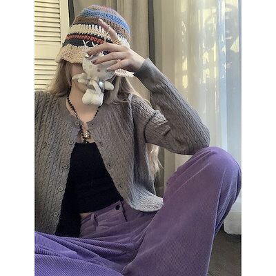 ベーシックニット 麻の長袖ニットカーディガンレディース秋の韓国版2023新デザインフィットスリム刺繍セーターコート