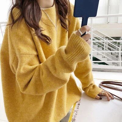 ベーシックニット 韓国ファッション ニット セーター トップス ニット インナー ベーシックニット 丸ネックレイヤードトップス ゆったり 着痩せ 百掛け 冬アウター レディース