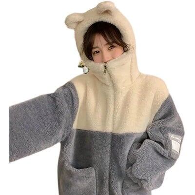 ジャケット クリスマス 韓国ファッション 冬 ブラッシュトップス アウター フード付き お肌に優しい ふわふわ ウォーム キュート 色切り替え ゆったり 厚手 レディース 着やせ 学生