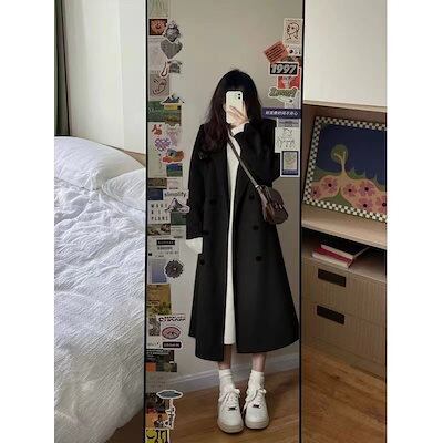 韓国系レトロロングラシャコート秋冬は膝丈厚手ヘボン風小柄毛ねコート女