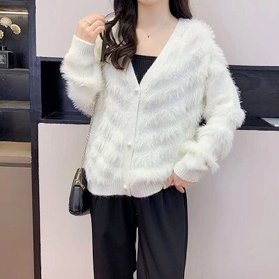 ベーシックニット 2023年秋冬新作V字ネック長袖ニットオールインワン着やせ優しさ風トップス洋風ゆったりセーター