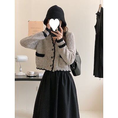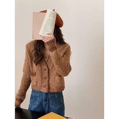 ベーシックニット 小香風雰囲気ショートカーディガンセーター女性の朝秋風ファッションニットコートトップスニットカーディガン