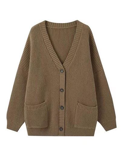 ベーシックニット 2023新作セーターカーディガンニットコート秋冬韓国版学院風学生ゆったり襟百合ピュアカラー