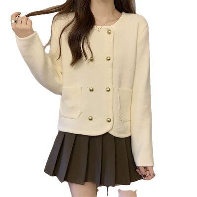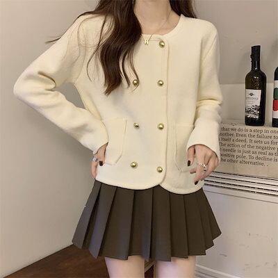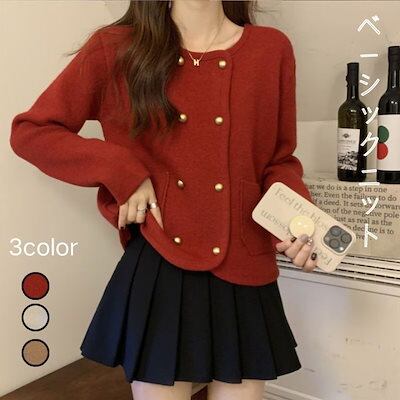 ベーシックニット 秋冬レトロな新年の赤セーターコート洋風ショート丈トップス レディース おしゃれ