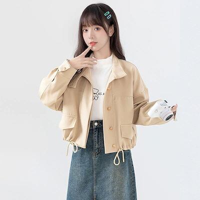 LA PELLEアウター 2024 春秋新作 ラペル ドローストリング ショート ワークウェア ジャケット レディース 学生 ルーズ カジュアル 小さい ジャケット トップス 韓国ファッション
