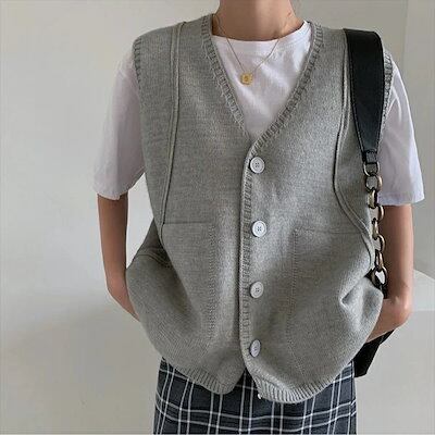 ベスト ニットベスト レディース カーディガン アウター トップス 春秋 着痩せ 学生 重ね着 カジュアル 通勤 可愛い vネック 通学 無地 韓国ファッション