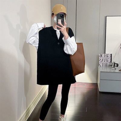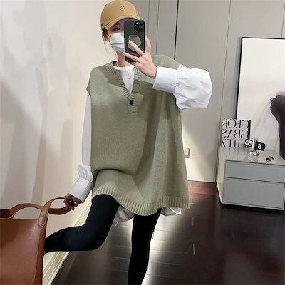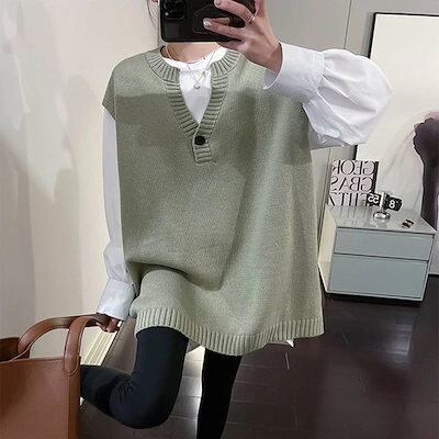 ベスト 2024年秋 百掛け Vネック レディース ノースリーブ ニット 薄手 重ね着 ゆったり ベスト 韓国ファッション