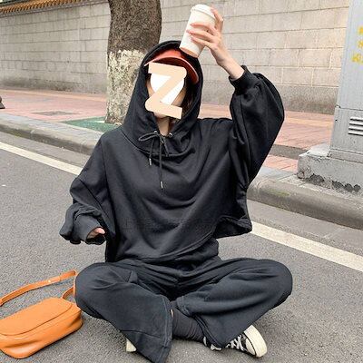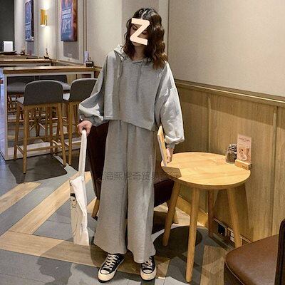 セットアップ スポーツ カジュアル セット レディース 2024 春と秋 韓国バージョン フード付き 長袖 スウェットシャツ ルーズ ワイドパンツ ロングパンツ ファッション ツーピース・セット 韓国