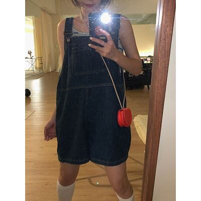 コーデ完成!サロペット 2024新しい女性の夏のショートパンツスキニーダークブルーデニムストラップパンツ 韓国ファッション