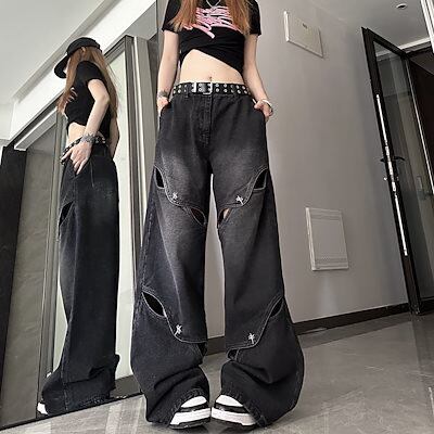 激?れ人気商品 脚長効果!デニムパンツ かっこいい!スラックスパンツ ストレートジーンズ 春夏 アメリカ ハイウエスト ゆったり ワイドパンツ