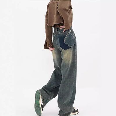 激?れ人気商品 脚長効果!デニムパンツ かっこいい!スラックスパンツ ストレートジーンズ 春夏 レトロハイウエスト ゆったり ワイドパンツ