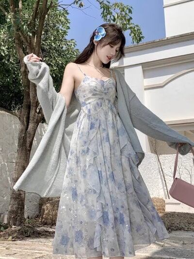 2024夏新品!!!夏 人気 韓国ファッション ロングワンピース ドレス フレアプリント キャミソール 通勤 通学