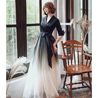 2024新品追加パーティドレス グラデーション ワンピース 韓国ファッション ロングドレス 結婚式 誕生日 演奏会 花嫁 司会 上品