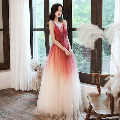 2024新品追加パーティドレス グレーグラデーションキャミソール ワンピース 韓国ファッション ロングドレス 結婚式 誕生日 演奏会 花嫁 司会