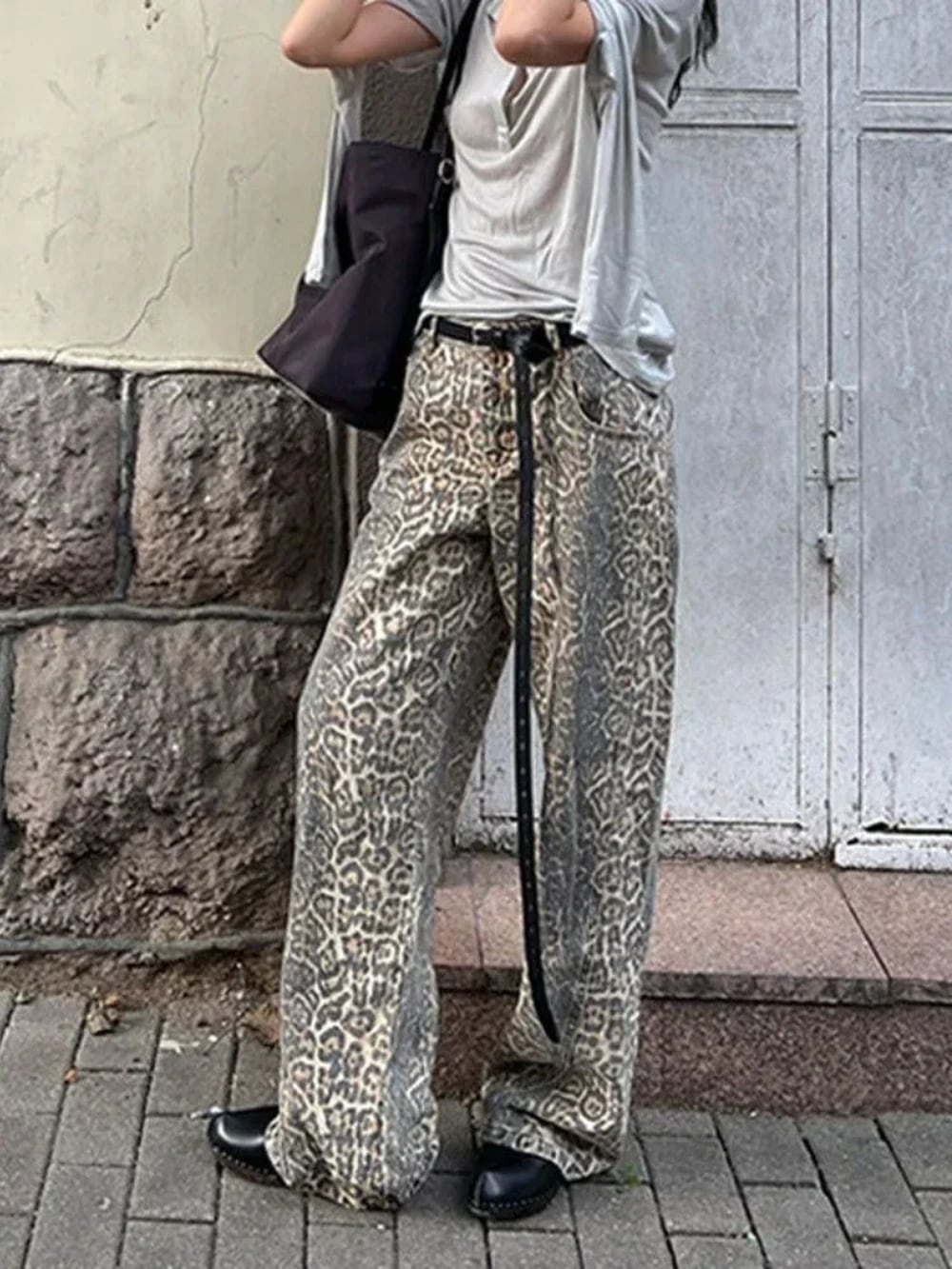 Deeptown-女性のアメリカのヒョウ柄のウォッシュジーンズ、ヴィンテージホールジーンズ、ハイウエスト、ストレートバギージーンズ、ベージュ、特大のストリート、y2k T240926104935_01