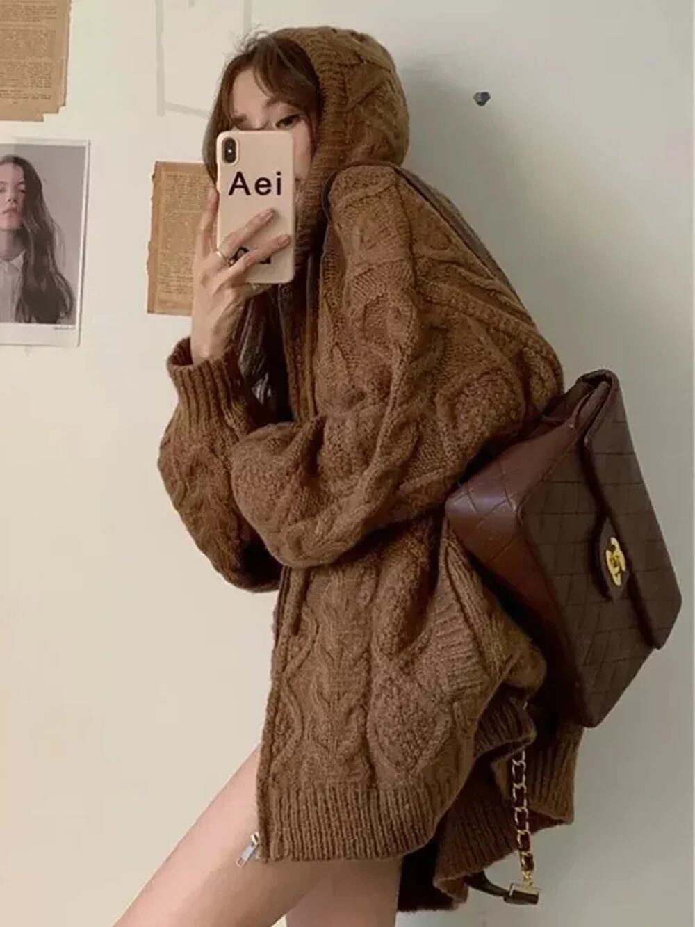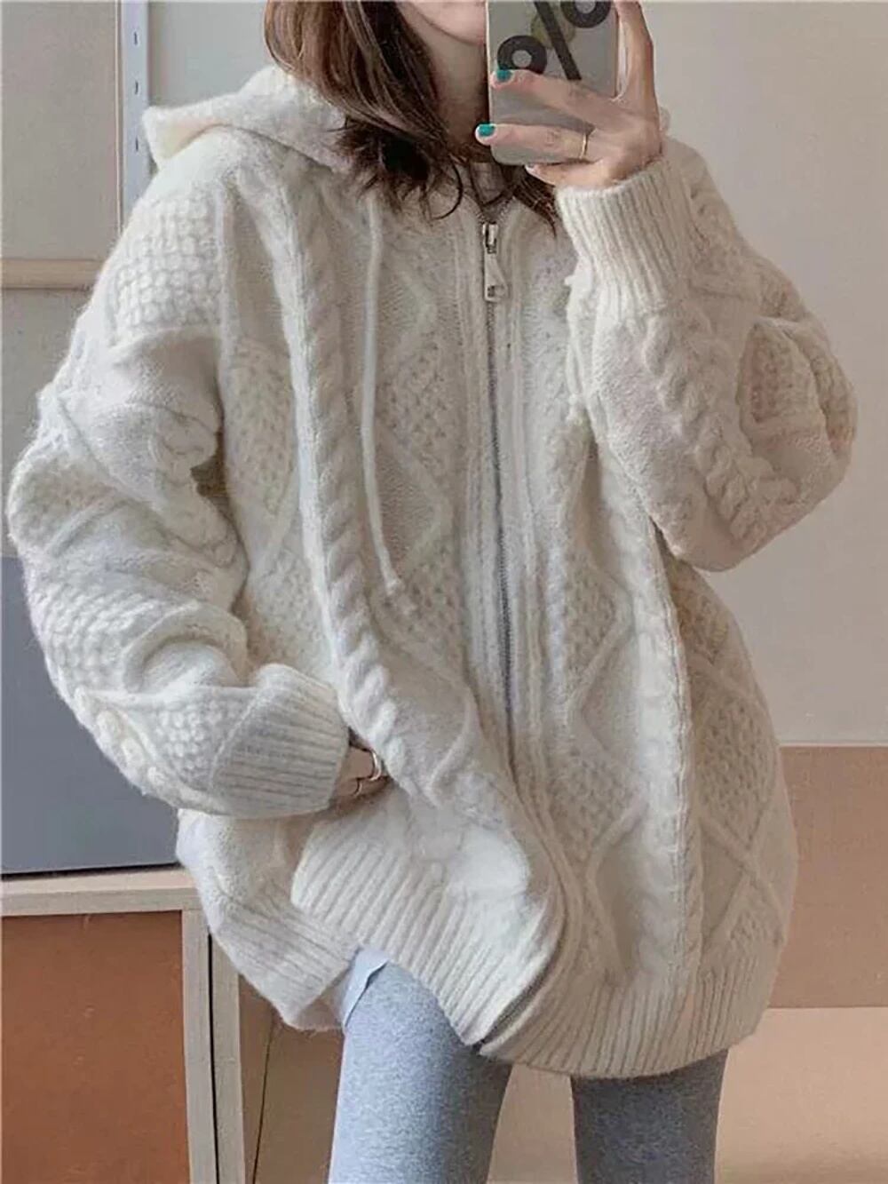 Deeptown-女性の韓国のファッションニット長袖カーディガン、カジュアルなルーズセーター、フード付き、ジッパー、厚い、ピンクのトップ、秋、冬 T240926105126_01