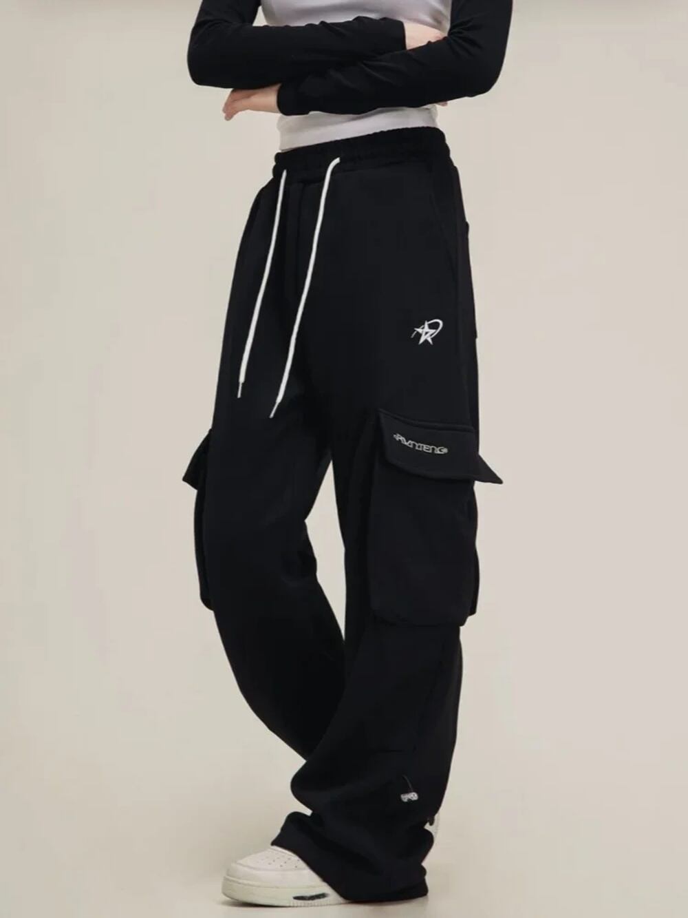 ディープタウンハイウエストワイドレッグバギーパンツ、ヴィンテージストリートウェア、アメリカンレトログランジ、ヒップホップ特大スウェットパンツ、夏、y2k、2024 T240926105154_02