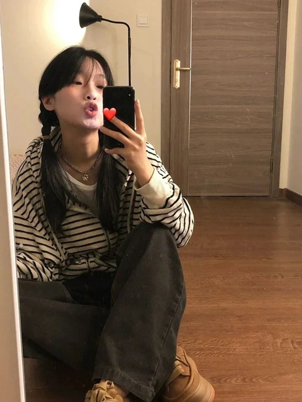 Deeptown-女性のためのヴィンテージのストライプのフード付きスウェットシャツ,だぶだぶのスウェットシャツ,ジッパー付きスウェットシャツ,韓国のカジュアルスタイル,すべてにマッチ,グランジスタイル T240926105207_01