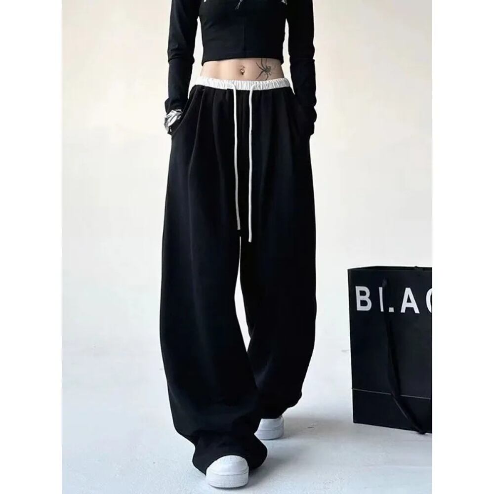 Deeptown-レディースブラックバギースウェットパンツ、ヴィンテージ原宿ストリートウェア、カジュアルスポーツ、韓国ファッション、秋 T240926105211_02