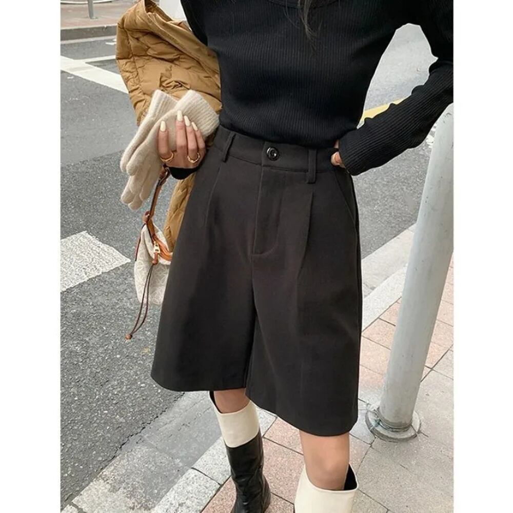 Deeptown-レディースバギーヴィンテージショーツ、エレガントなオフィスパンツ、ラディーズのワイドレッグパンツ、韓国の黒、原宿特大、夏 T240926105220_02