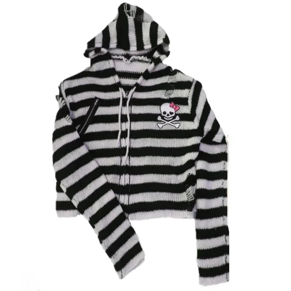 Deeptown-ジッパー付きの特大フード付きカーディガン,韓国スタイル,ヴィンテージセーター,ゴシック,原宿,ギャル,カジュアルアウター,y2k T240926105254_01