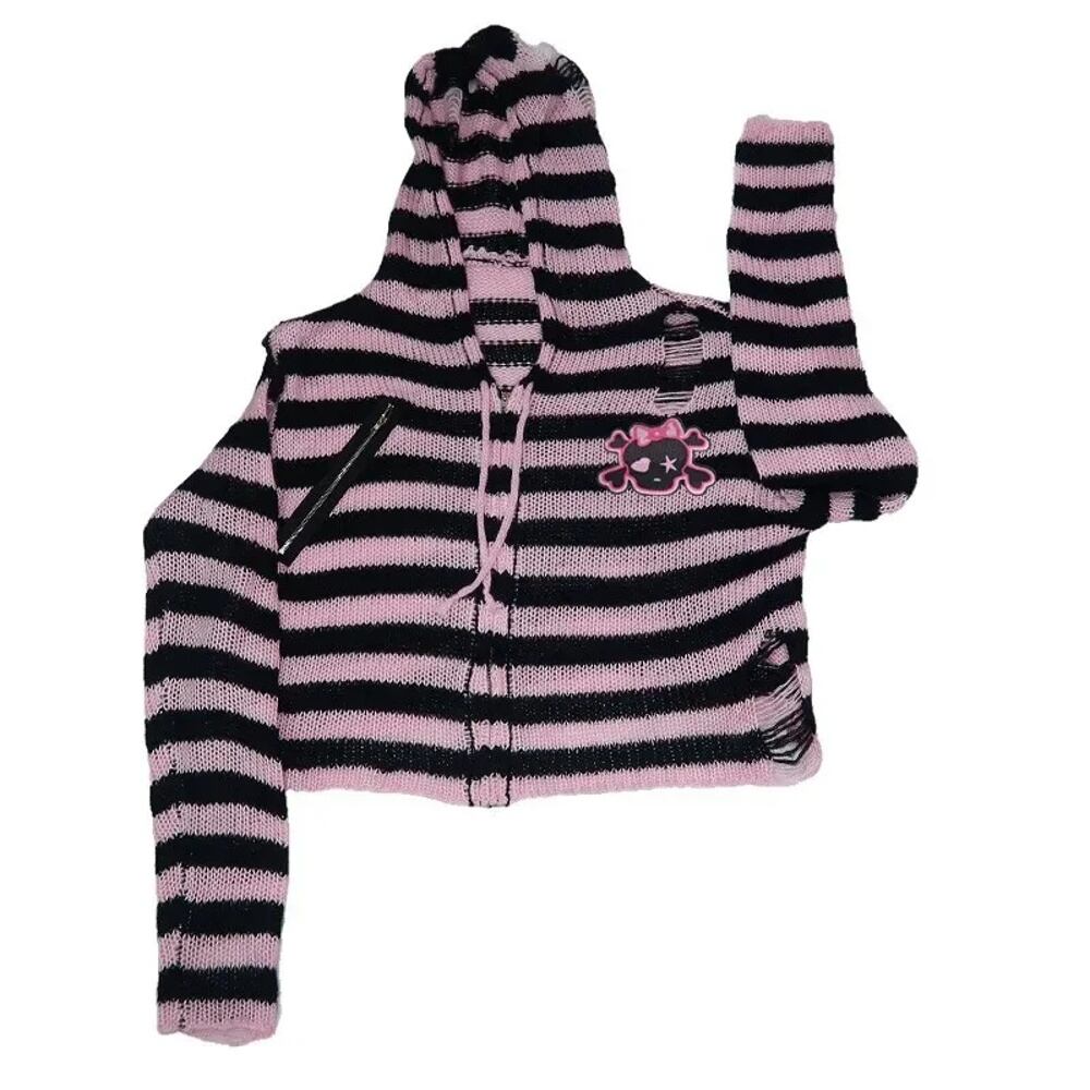 Deeptown-ジッパー付きの特大フード付きカーディガン,韓国スタイル,ヴィンテージセーター,ゴシック,原宿,ギャル,カジュアルアウター,y2k T240926105254_03