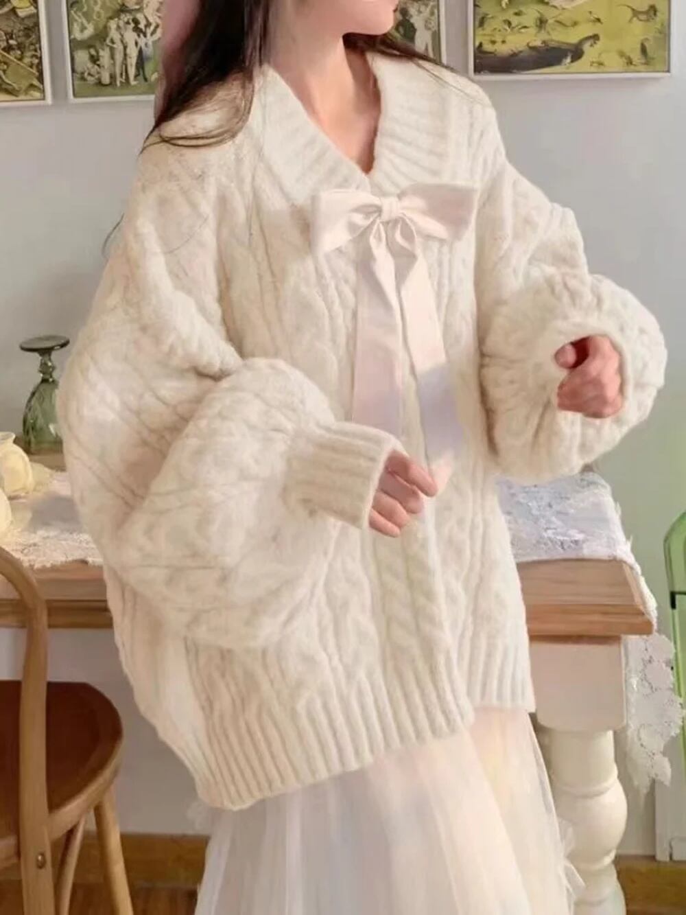 Deeptow-女性用Vネックボウルーズニットセーター、ピンクのカワイイプルオーバー、長袖、プレッピースタイル、甘い、秋、冬、2024 T240926105259_02