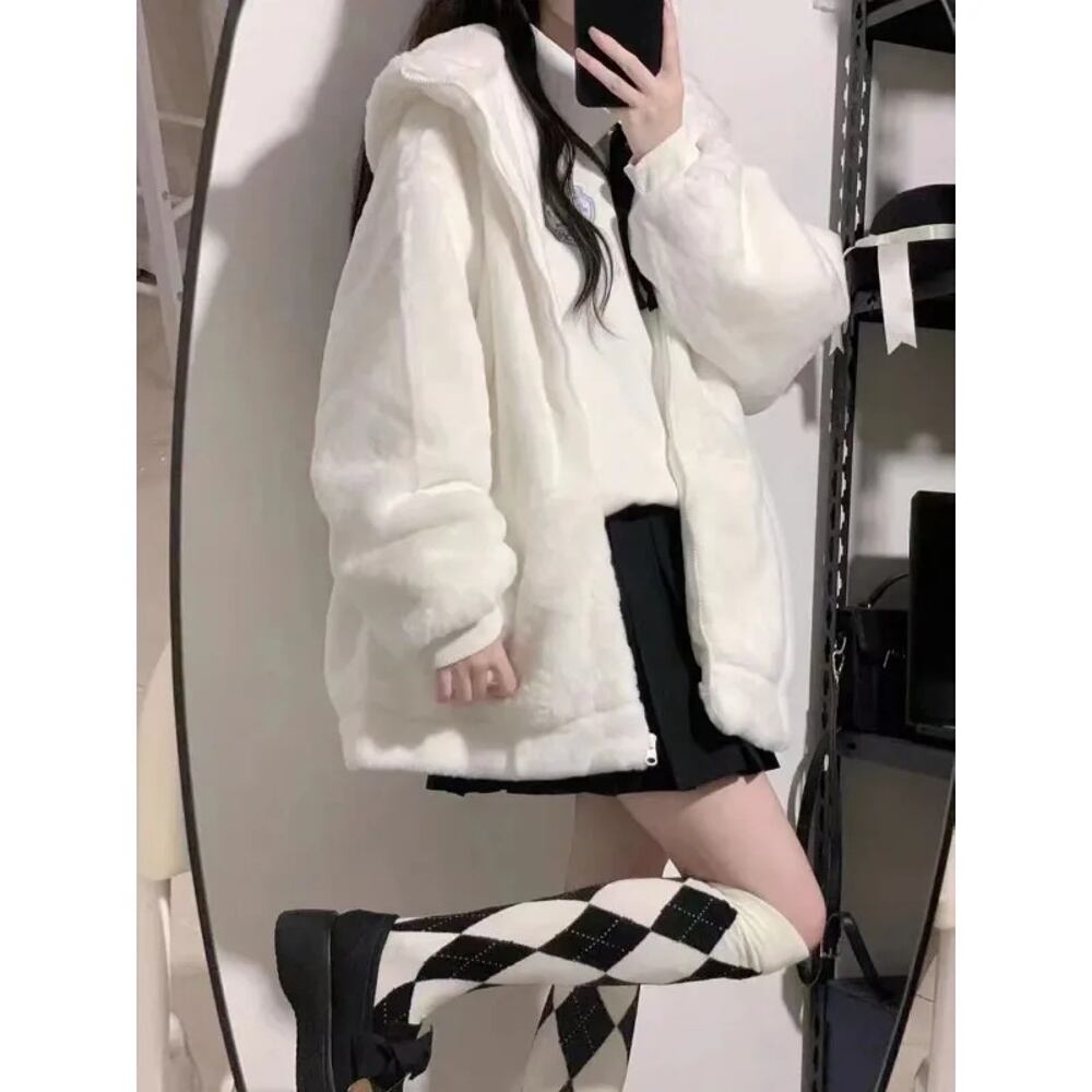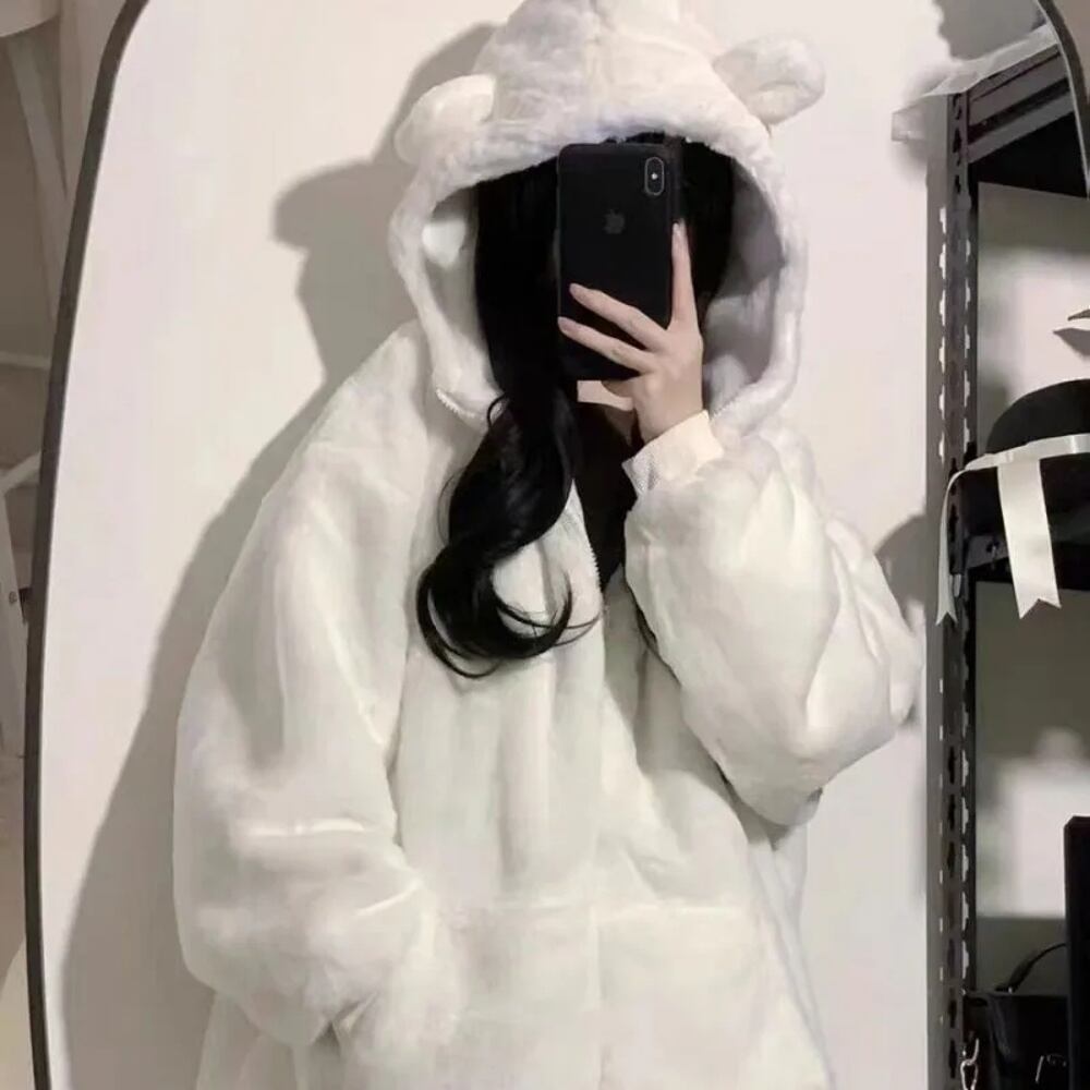 Deeptown-女性の厚手のファジーフリースジップパーカー、原宿スウェットシャツ、ベアイヤー、特大の白いコート、かわいい柔らかいアウターウェア、冬、新しい T240926105348_01