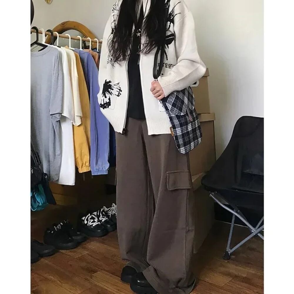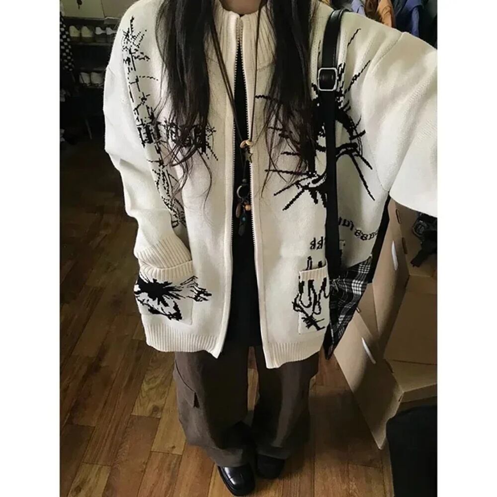 Deeptown-女性のヴィンテージジッパーニットカーディガン,アメリカンゴスセーター,原宿プリント,グランジ,特大ストリートウェア,日本,秋,y2k T240926105451_01