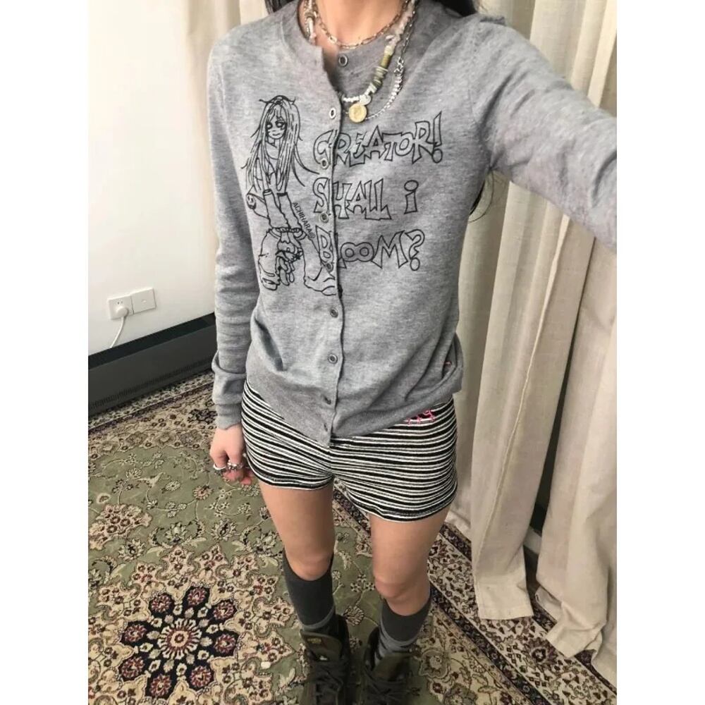 Deeptown-女性用ニット長袖カーディガン、原宿セーター、日本のファッション、アニメグラフィックナイトウェア、ゴシックゴミ箱2kファッション、春 T240926105454_01