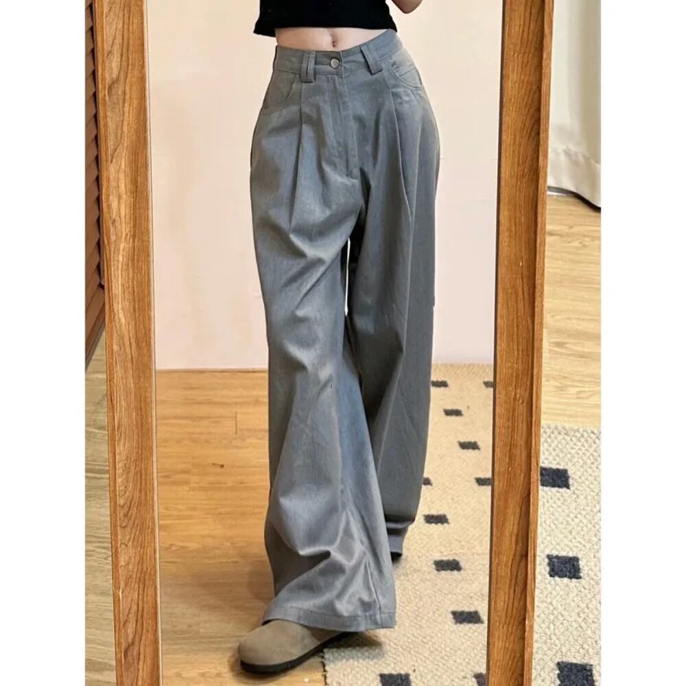 Deeptown-女性用ワイドレッググレーバギージーンズ、ヴィンテージデニムパンツ、ハイウエスト、特大パンツ、カジュアル、韓国ファッション、夏、y2k T240926105504_01