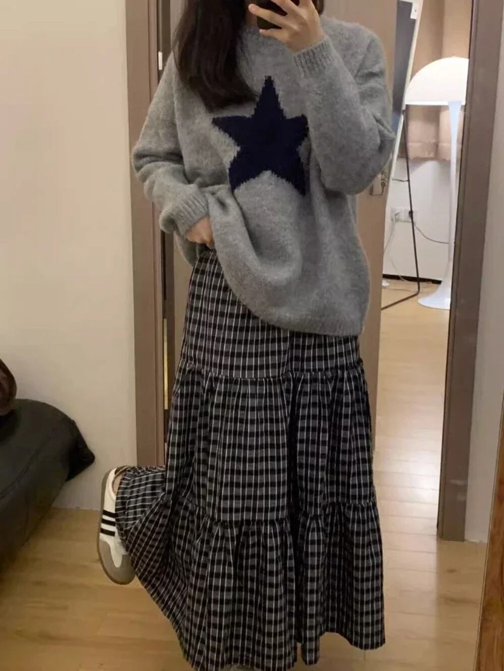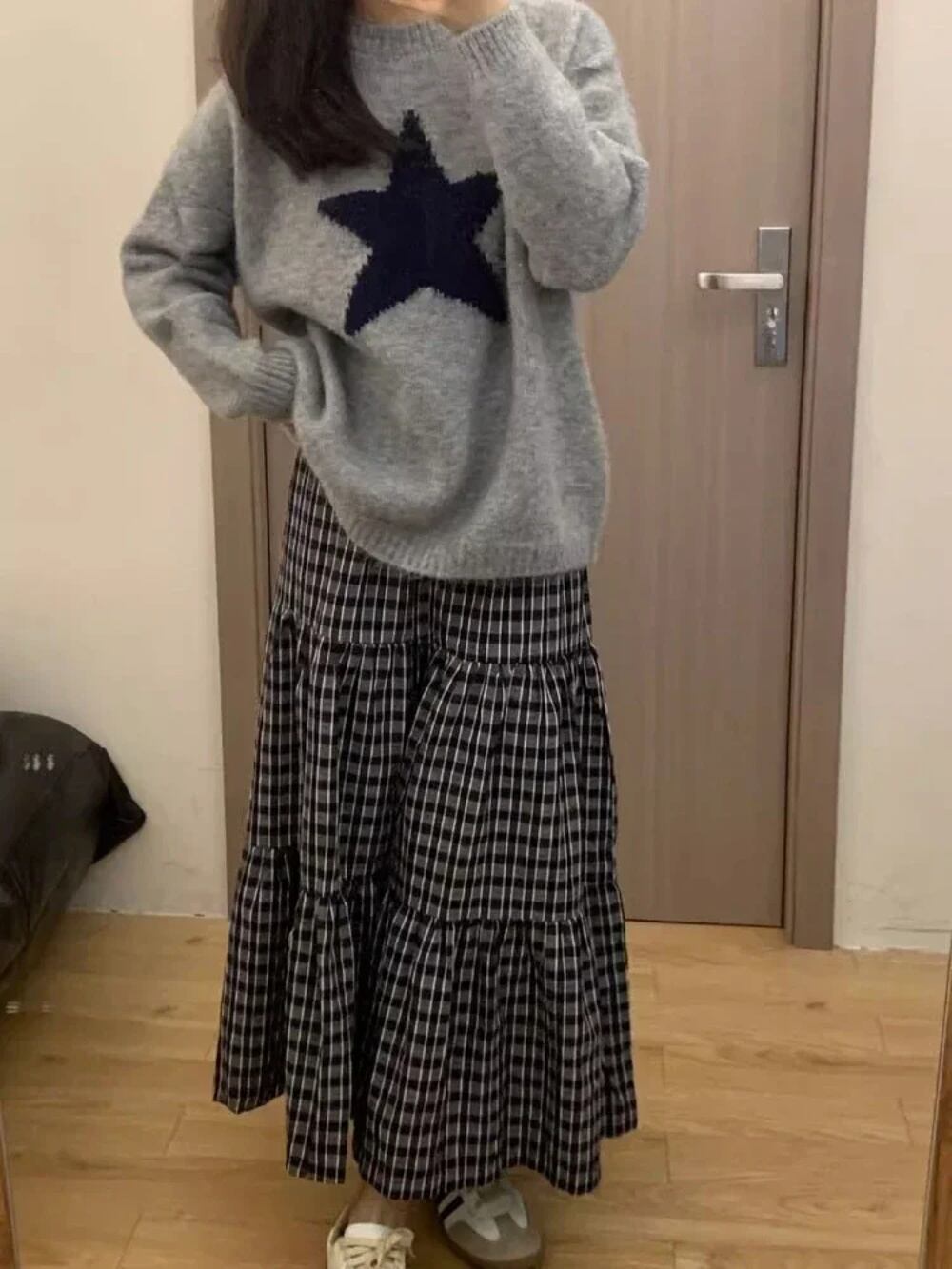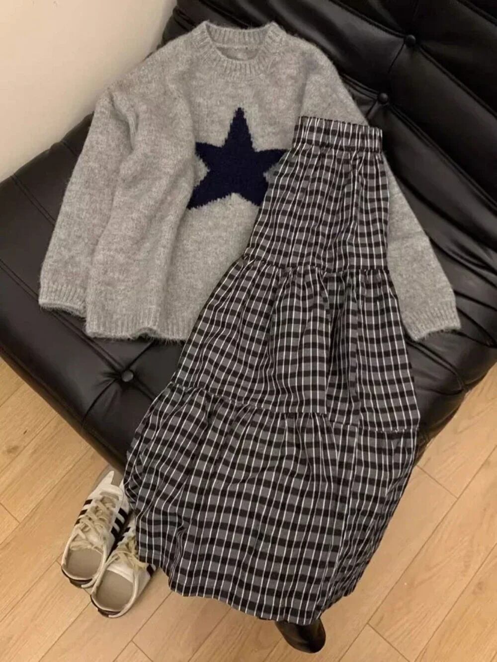 Deeptown-女性の美的スターセーター、ハラジュクヴィンテージグレーのニットジャンパー、韓国のレトロなルーズウォームプルオーバー、ハイストリートトップス、y2k T240926105535_01