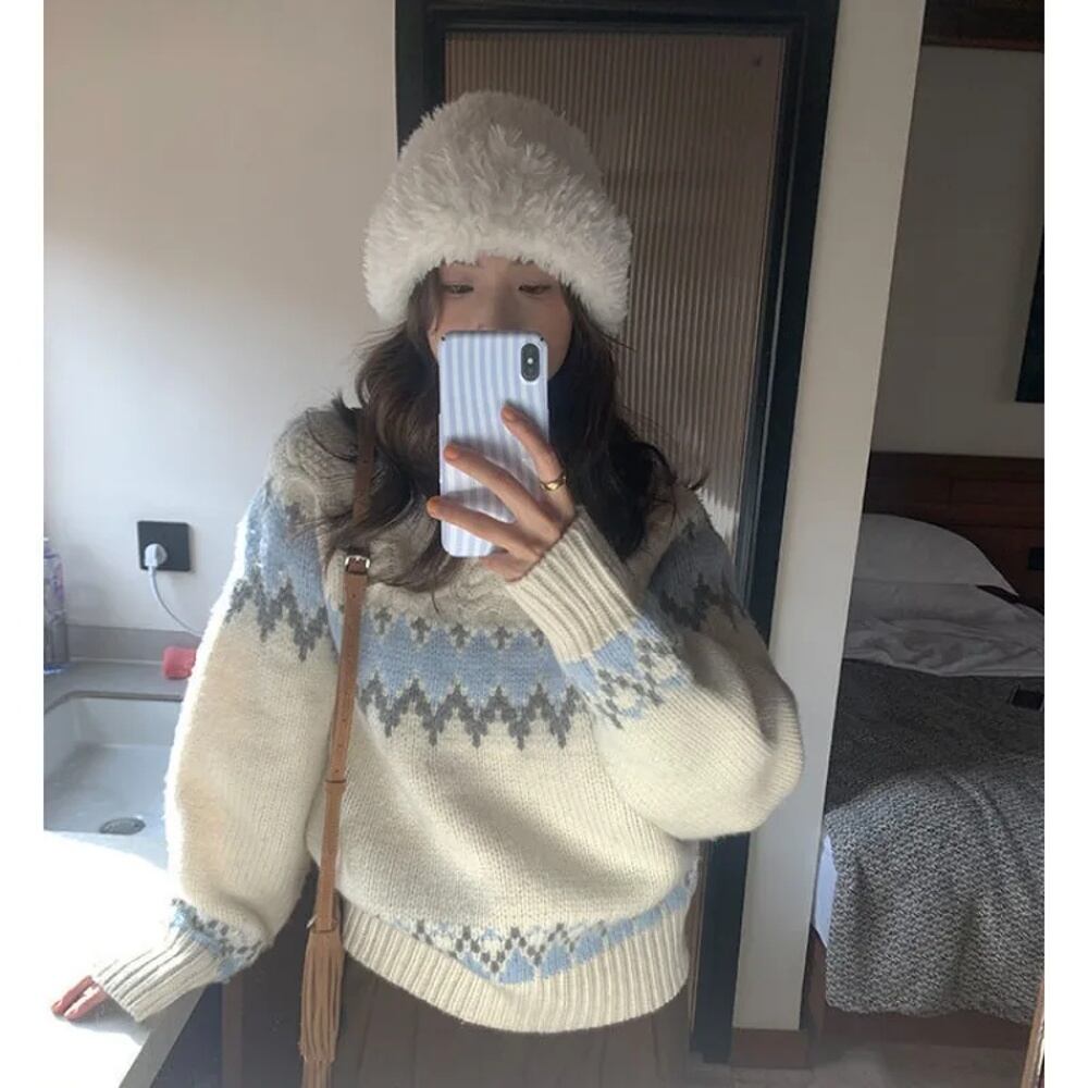 Deeptown-女性のヴィンテージニットセーター、韓国のファッション、特大のジャンパー、美的、原宿、日本、カジュアルなプルオーバー、冬 T240926105600_01
