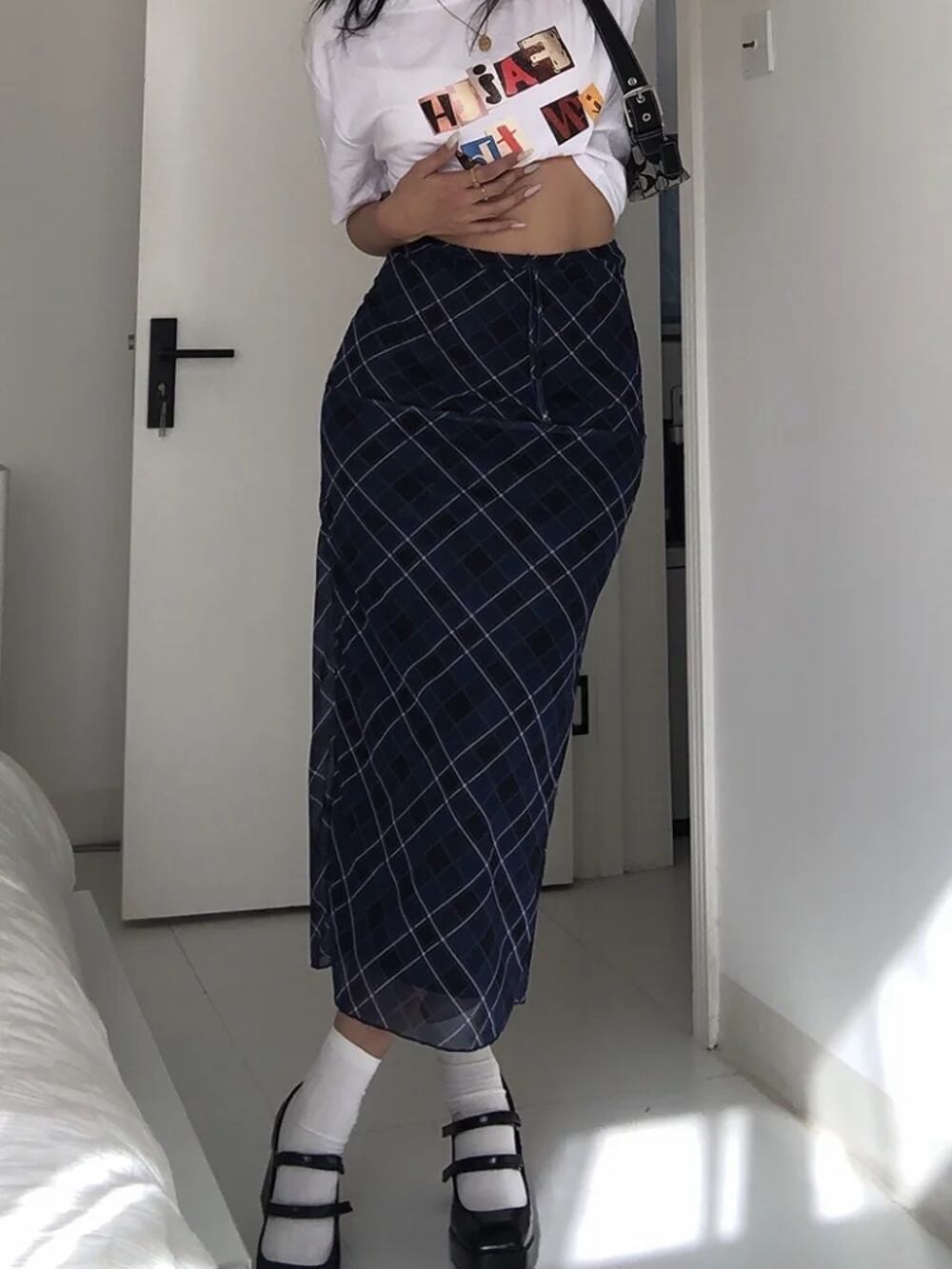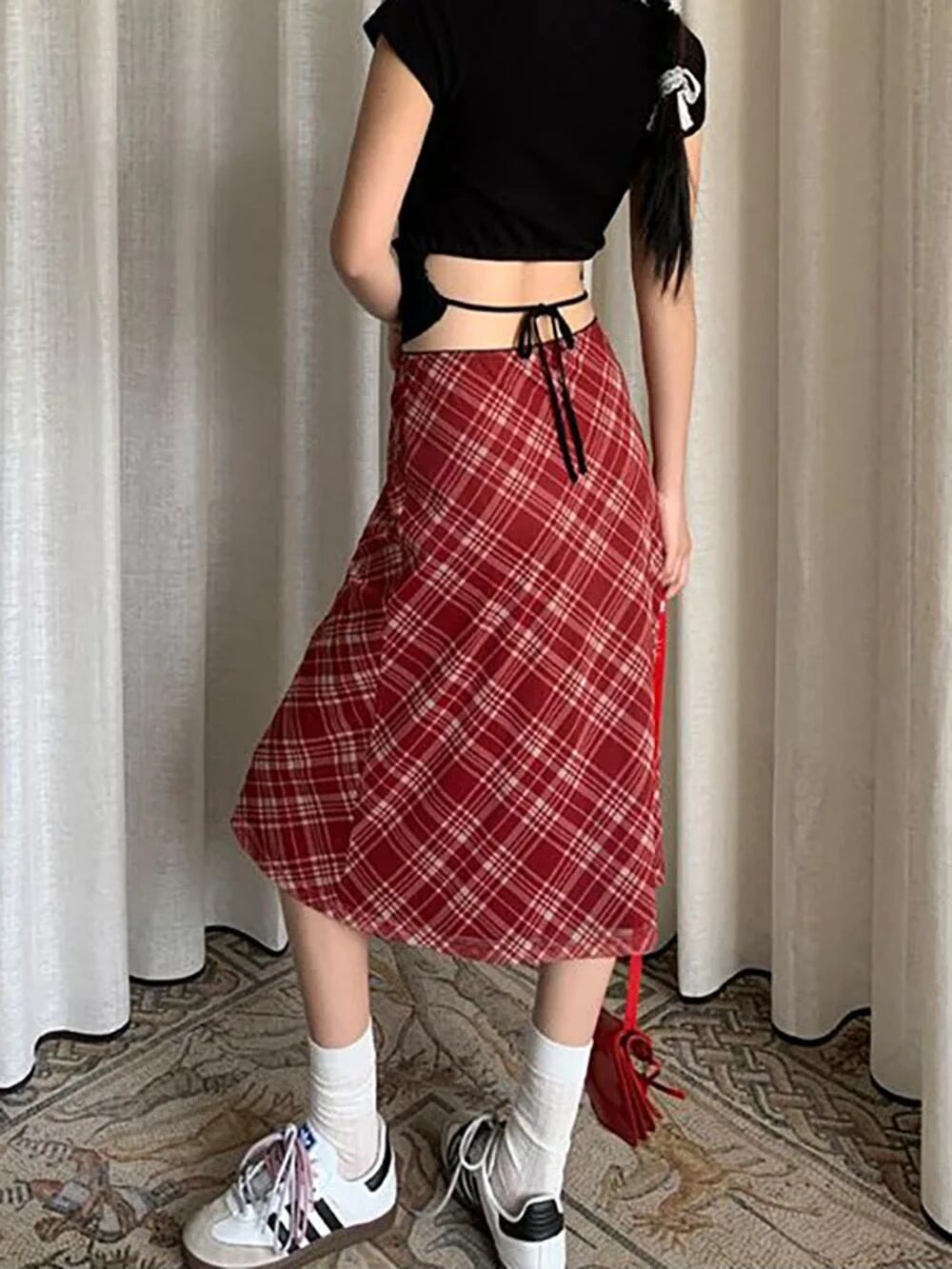 Deeotown-女性の市松模様のロングスカート、ローウエスト、スリム、ストリートウェア、gyaru、メッシュパッチワーク、ストレート、マキシ、秋のファッション、女の子、y2k T240926105608_01