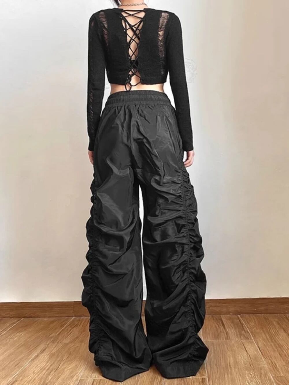 Deeptown-レディースハイウエストパンツ、パンクヴィンテージストリートウェア、アメリカンレトロファッション、ソリッドプリーツルーズワイドレッグロングパンツ、サマー、2024 T240926105738_01