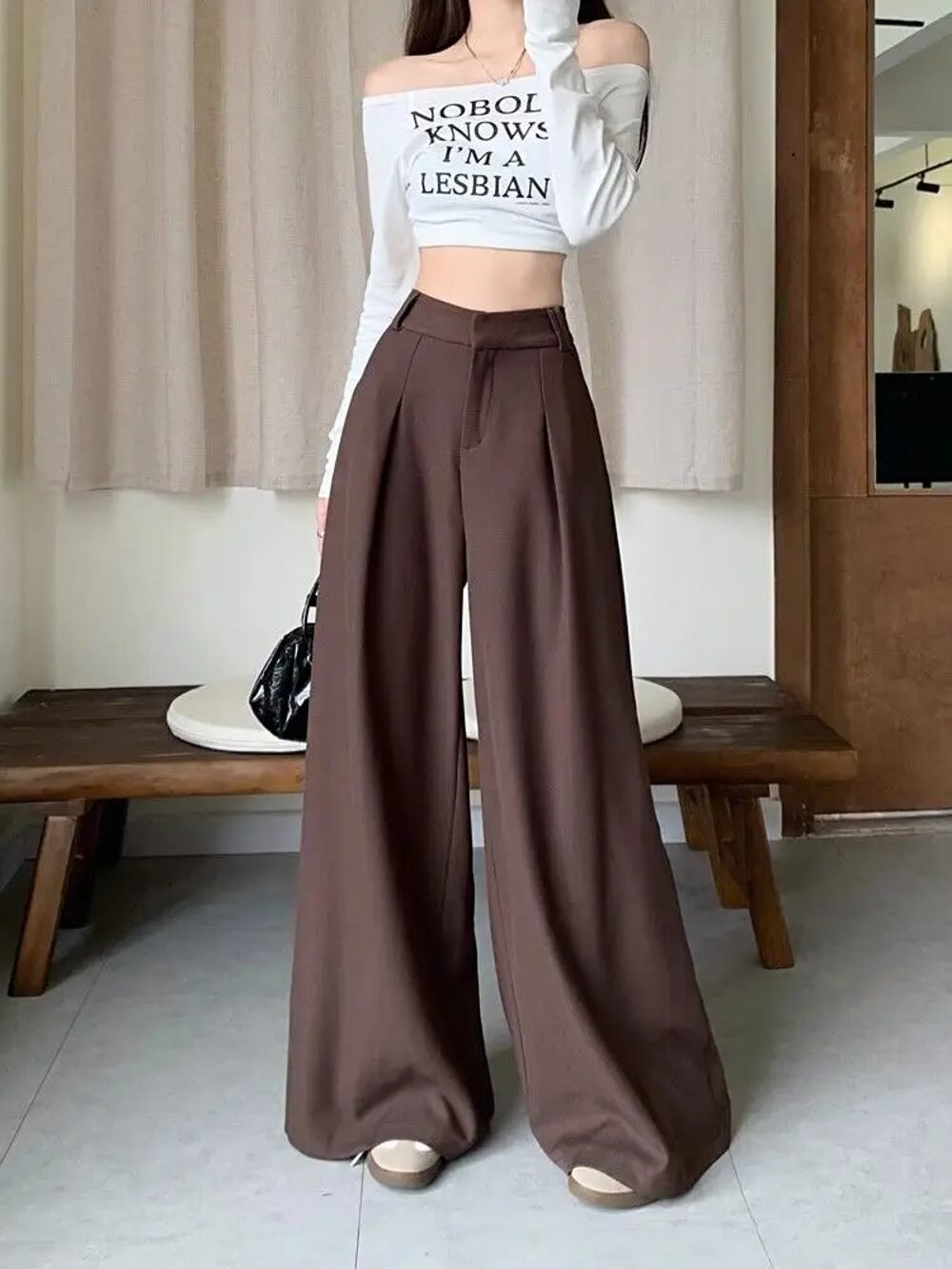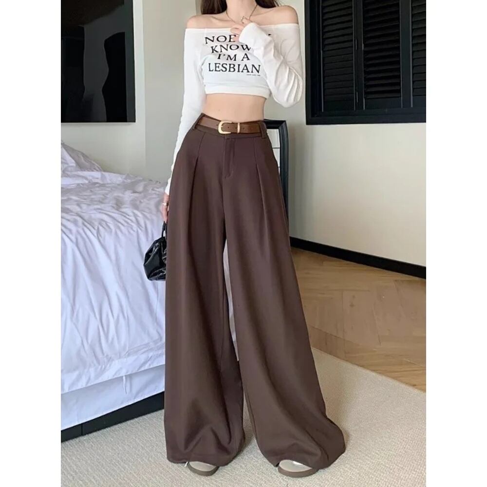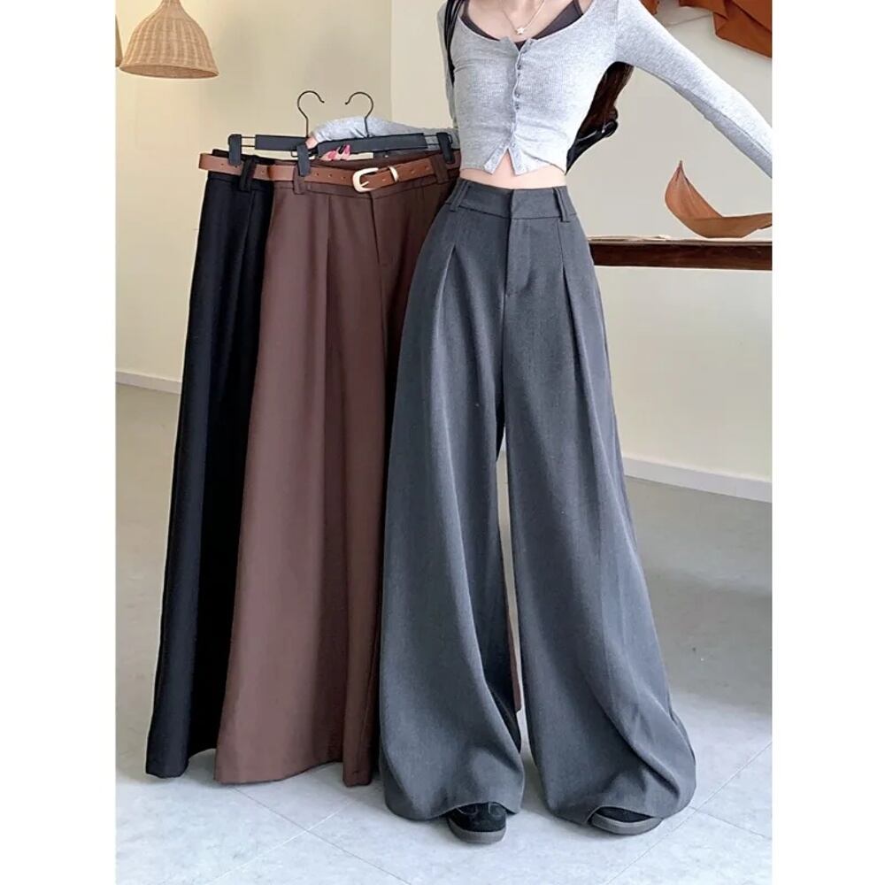 Deeptownレディースソリッドルーズスーツパンツ、ladi' オフィスバギースラックス、エレガントなストリートウェア、カジュアルワイドパンツ、韓国ファッション、春 T240926105802_01