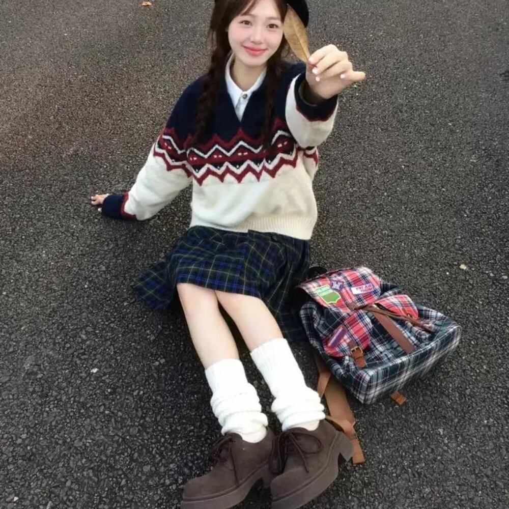 Deeptown-女性のヴィンテージセーター,プレッピースタイル,ニットセーター,和風パッチワーク,レトロ,カジュアル,秋,冬 T240926105910_01
