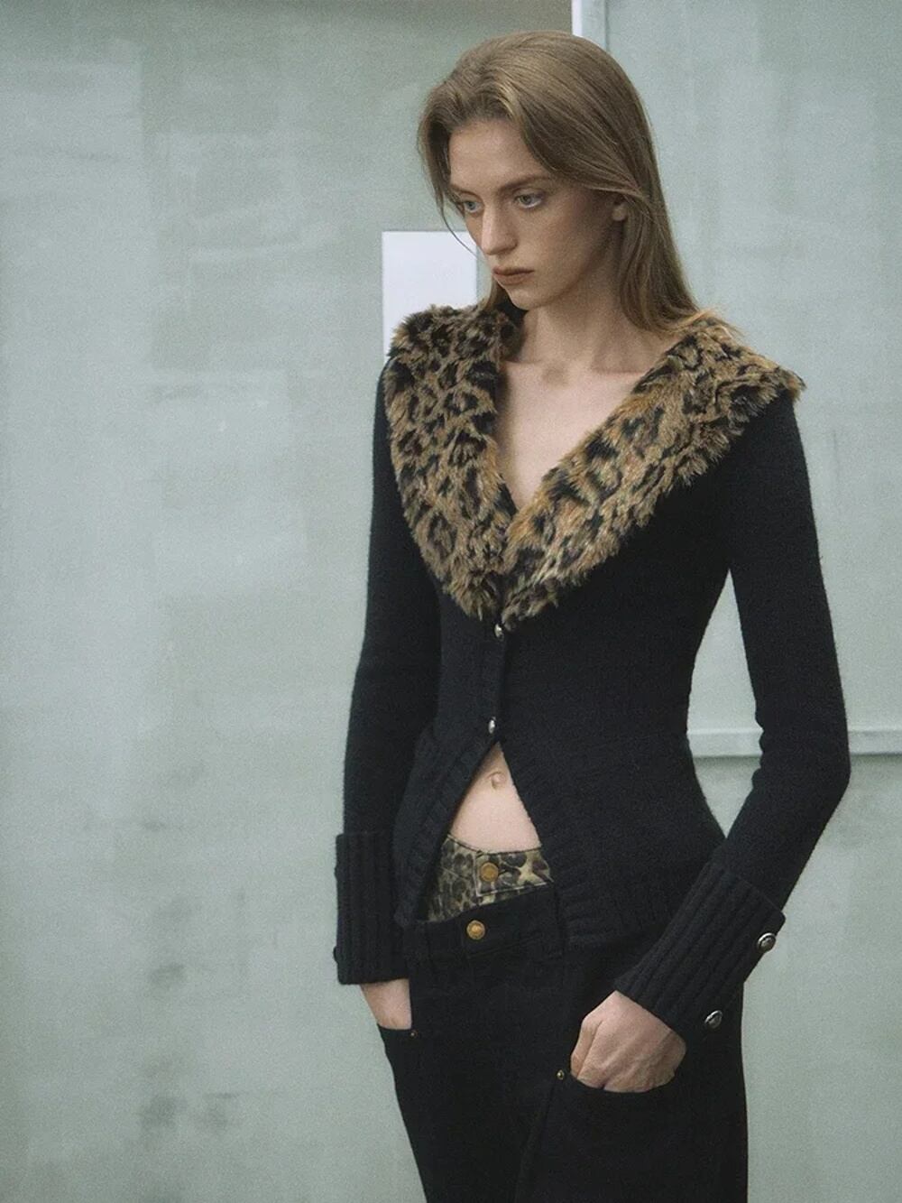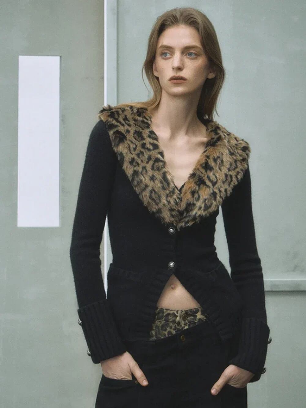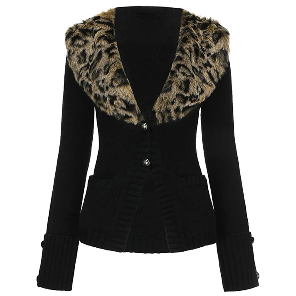 Deeptown-女性用ヴィンテージヒョウカーディガン、Vネックセーター、長袖、スリム、セクシー、y2kストリートウェア、秋、日本、ギャル T240926110102_01