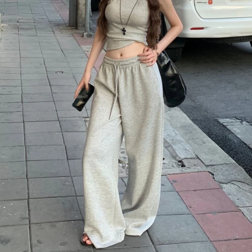 Deeptown-女性のカジュアルスポーツスウェットパンツ、特大のジョギングパンツ、ワイドレッググレーパンツ、バギーパンツ、韓国のファッション、夏、y2k T240926110139_01